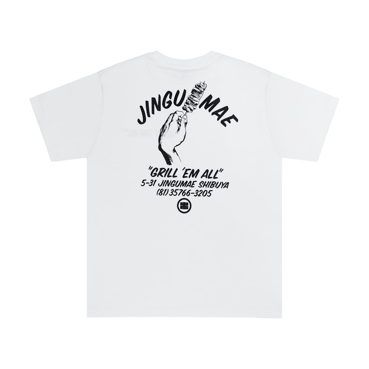 The front features the phrase “GRILL 'EM ALL” on the chest, while the back showcases a dynamic graphic. The design captures the spirit of the small bars and old-school izakayas still found in Shibuya today.